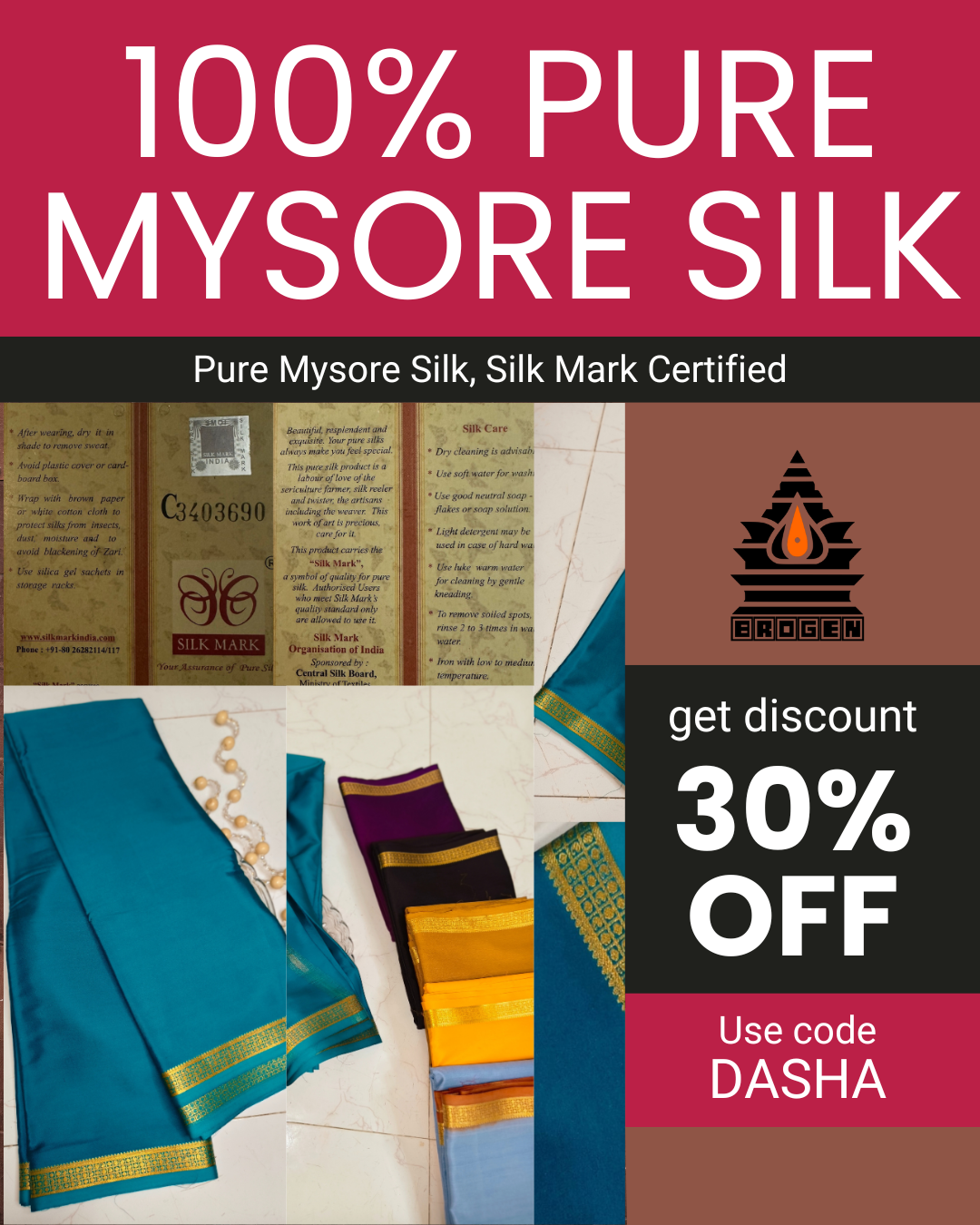 Discover our exclusive collection of Pure Mysore Silk Sarees, certified with the...