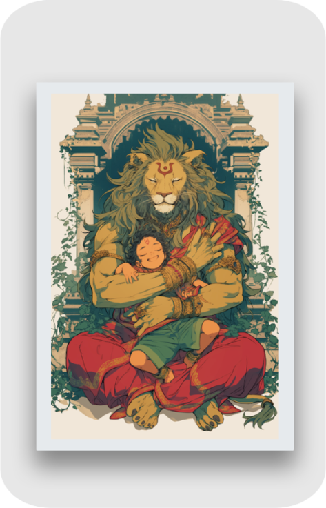 This A5 sticker of Narasimha Swamy hugging and protecting Prahlada is not just a sticker but a symbol of divine love and protection. Order yours today and bring a piece of spiritual art into your life!