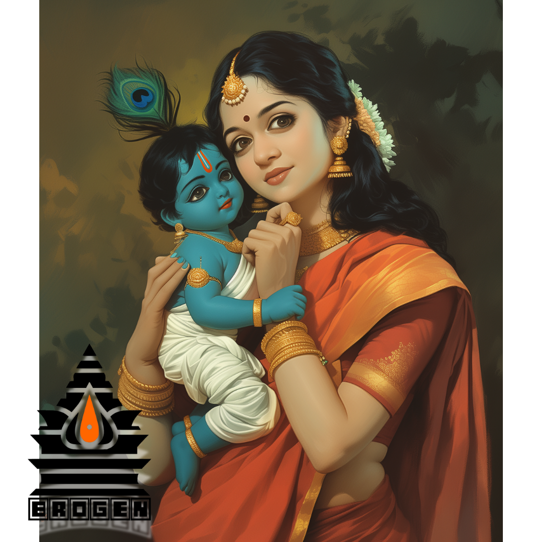 Baby Krishna with Mother Yashoda | Divine Bond Digital Art | High-Resolution HD Download