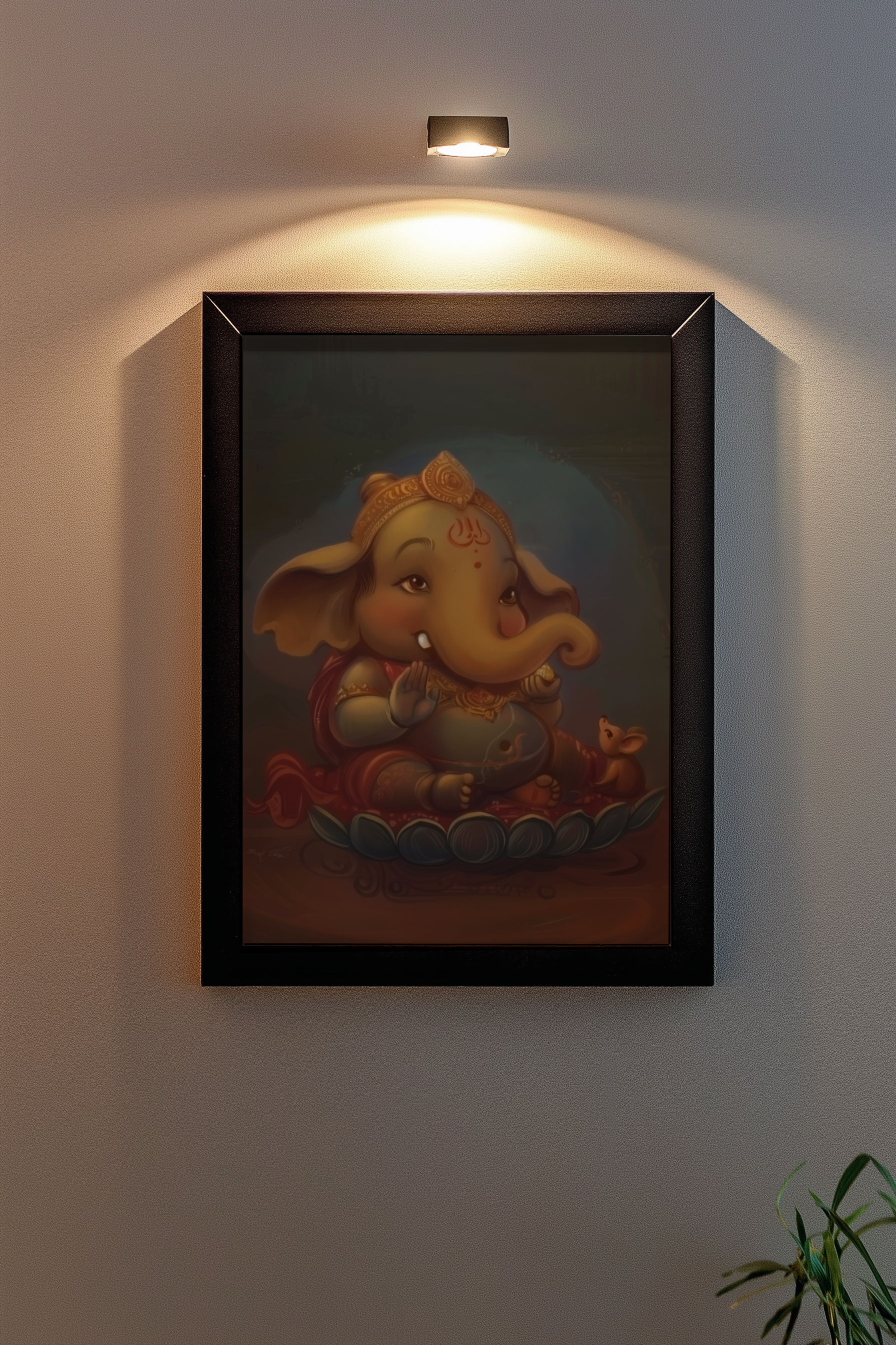 Bring home the charm and innocence of Bala Ganesha, the beloved child form of Lord Ganesh, depicted joyfully holding a Modak – the symbol of sweetness, wisdom, and divine blessings. This vibrant art frame adds warmth and positivity to your space.
