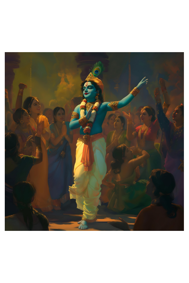Beautiful Krishna with Gopis Art Poster – 300 GSM Art Board | Perfect Gift for Devotees | Fade-Proof Spiritual Wall Art