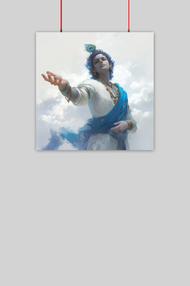 Lord Krishna Extending Hand to Help Wall Decor Poster – Perfect Gift for Devotees (14x14 Inch)