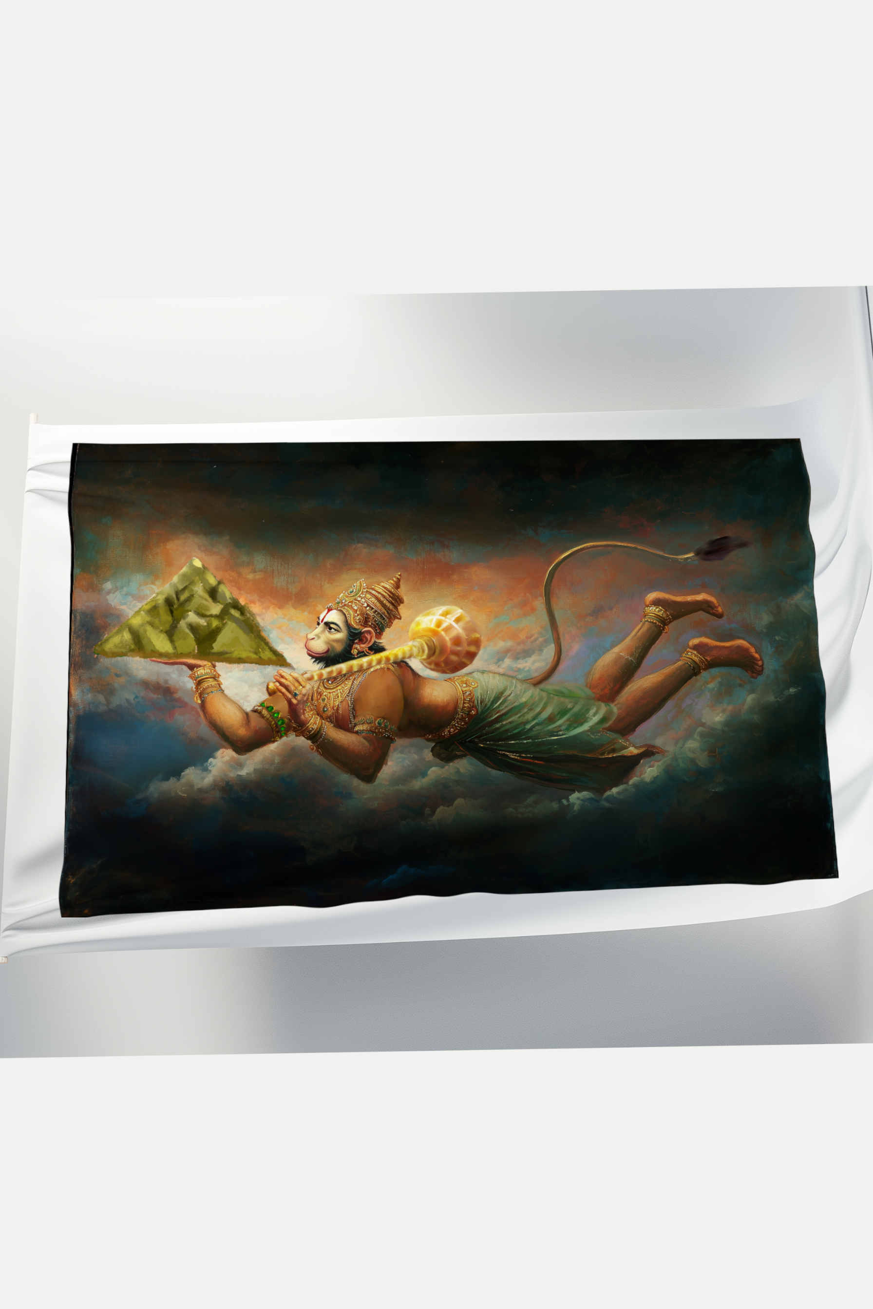 Hanuman Carrying Sanjeevani Mountain Rolled Canvas Print – Powerful Hindu Wall Art for Devotional Spaces