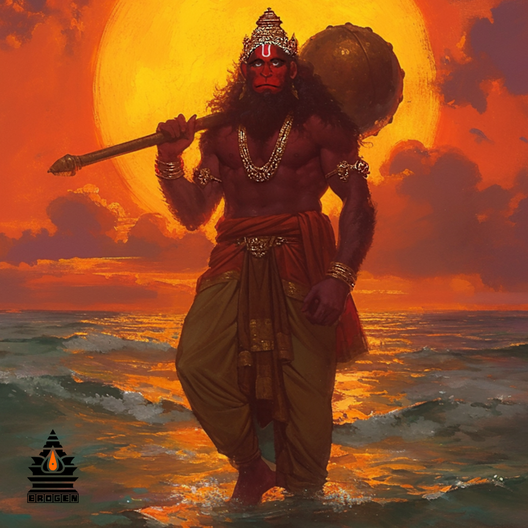 Experience the divine strength and valor of Hanuman, also known as Bajrangbali, with this stunning digital artwork featuring Lord Hanuman standing majestically against a serene sea background. This high-resolution digital art is a perfect blend of spirituality and artistic brilliance, making it an ideal addition to your devotional collection.