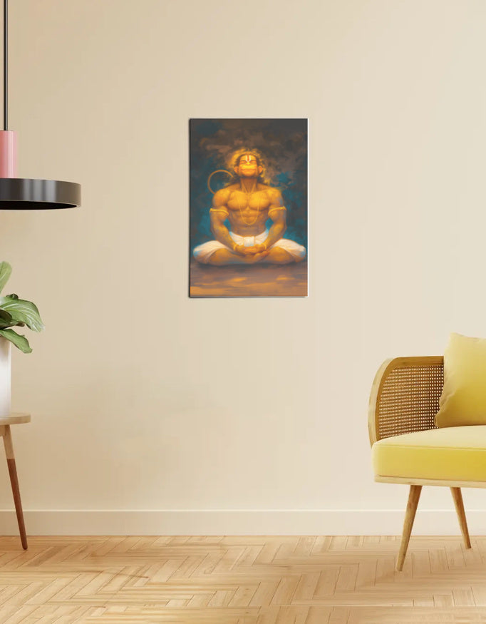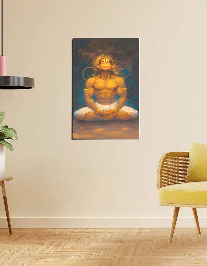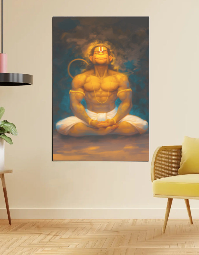 Hanuman Meditating Poster – 300 GSM Spiritual Wall Art for Strength and Devotion | Vastu Positive Decor