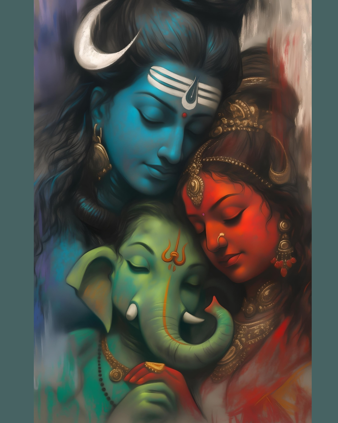 Experience the divine connection of Lord Ganesha with his parents, Lord Shiva and Goddess Parvati, through this meticulously crafted digital artwork. This high-resolution digital art (2942x4000 pixels, 96 dpi) vividly captures the essence of the sacred family, bringing together protection, wisdom, and nurturing love in one stunning piece. Perfect for spiritual spaces, home decor, or as a meaningful gift, this artwork embodies the unity and blessings of the divine family.