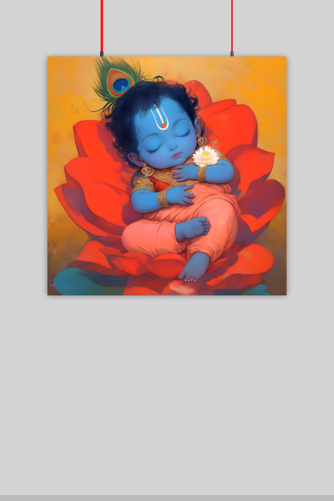Krishna Frame for Wall – Baby Krishna Sleeping Poster | Divine Wall Decor