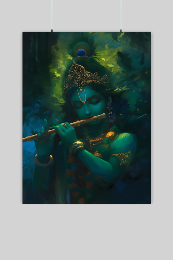 Krishna Playing Flute Poster – Divine Krishna Art Prints for Wall | Kanha Ji Ke Poster (18x24 inch) | Perfect Gift for Krishna Devotees