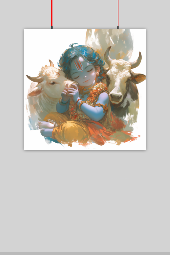 Krishna with Cows Painting Poster – Divine Wall Decor for Devotees