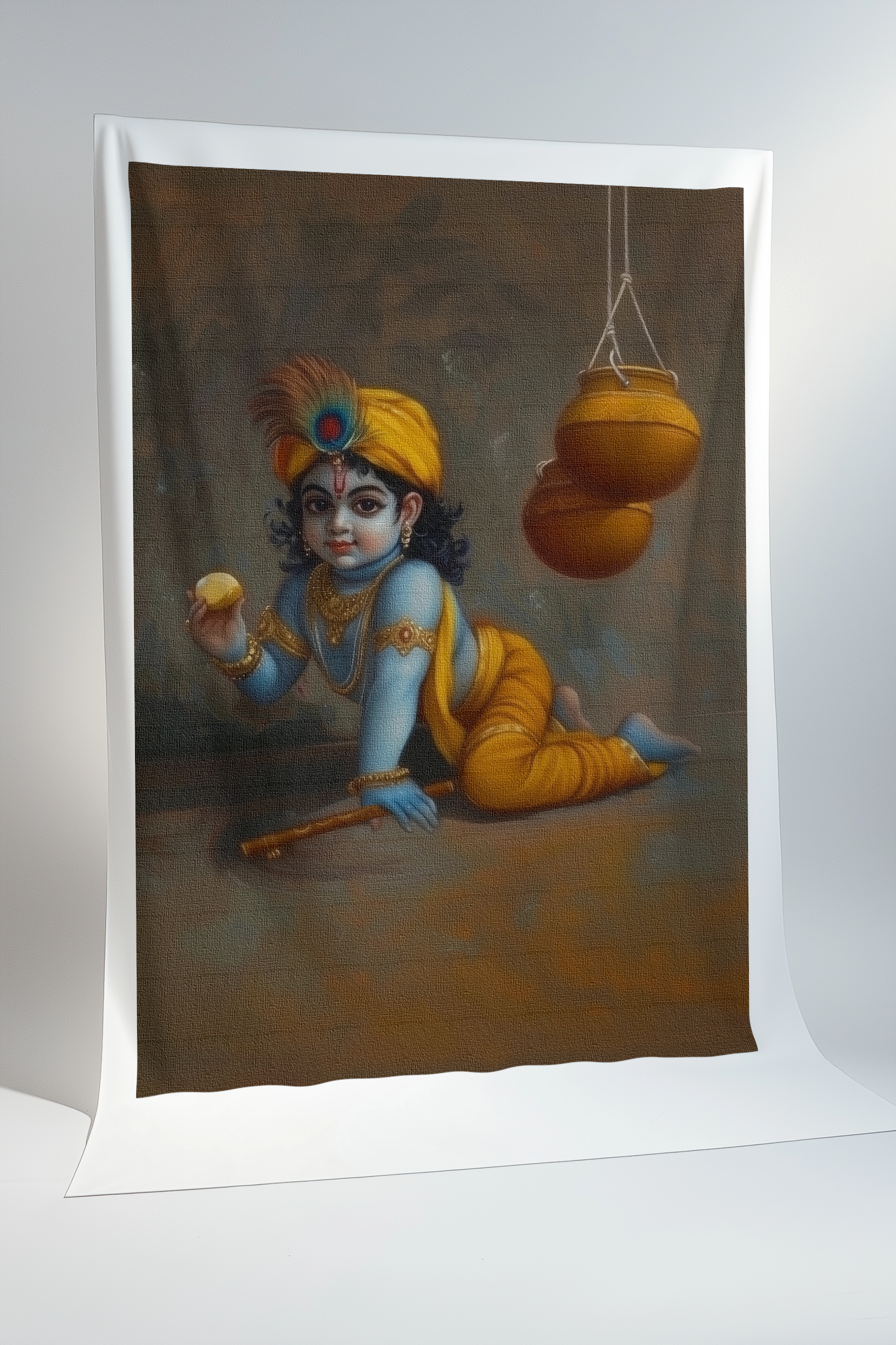 Laddu Gopal Baby Krishna Canvas Print Roll – Unframed Hindu God Wall Art for Devotional & Spiritual Decor