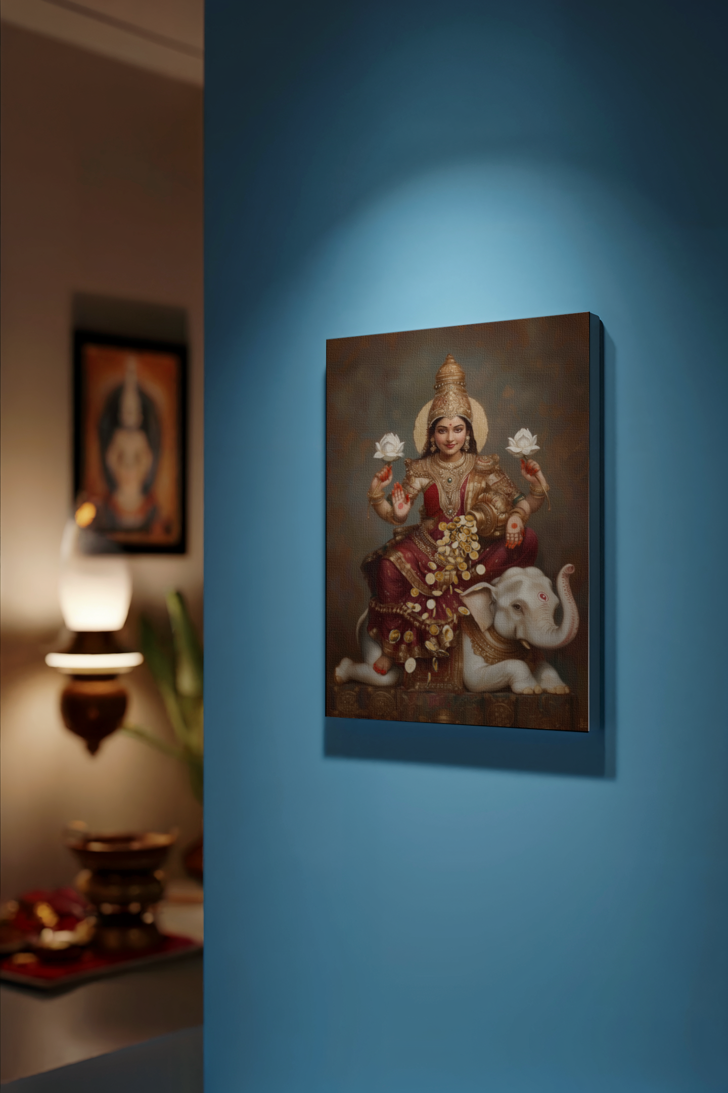 Lakshmi Mata digital painting on Canvas – Gajalakshmi Gallery Wrapped Canvas for Home & Pooja Room Decor