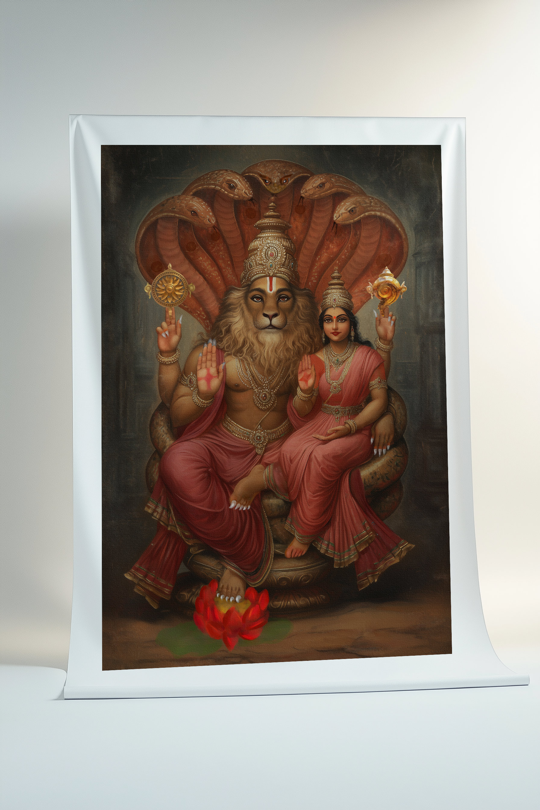 Lakshmi Narasimha Swamy Rolled Canvas Print – Divine Hindu Wall Art for Pooja Room & Spiritual Decor