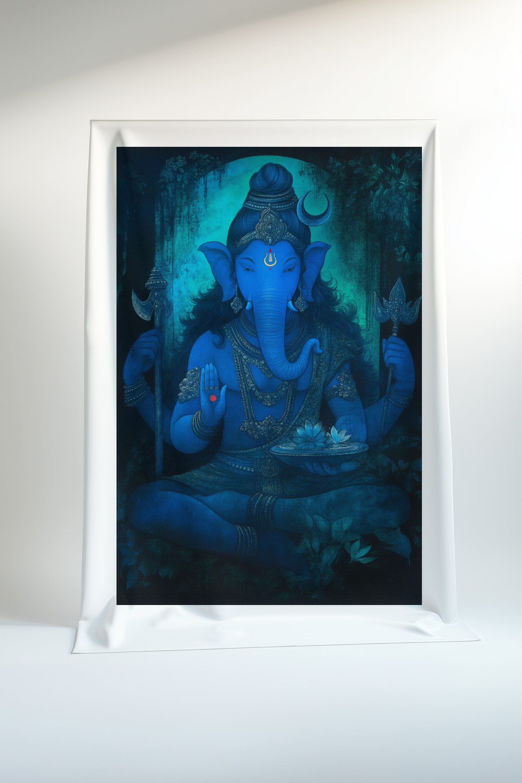 Lord Ganesh Rolled Canvas Print – Auspicious Hindu Wall Art for Home Temple and Spiritual Decor