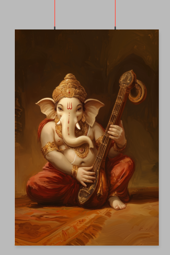 Lord Ganesha Playing Sitar Poster | Divine Music & Prosperity Wall Art