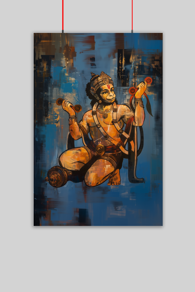 Lord Hanuman Doing Bhajan Poster | Spiritual Wall Art for Home & Pooja Room