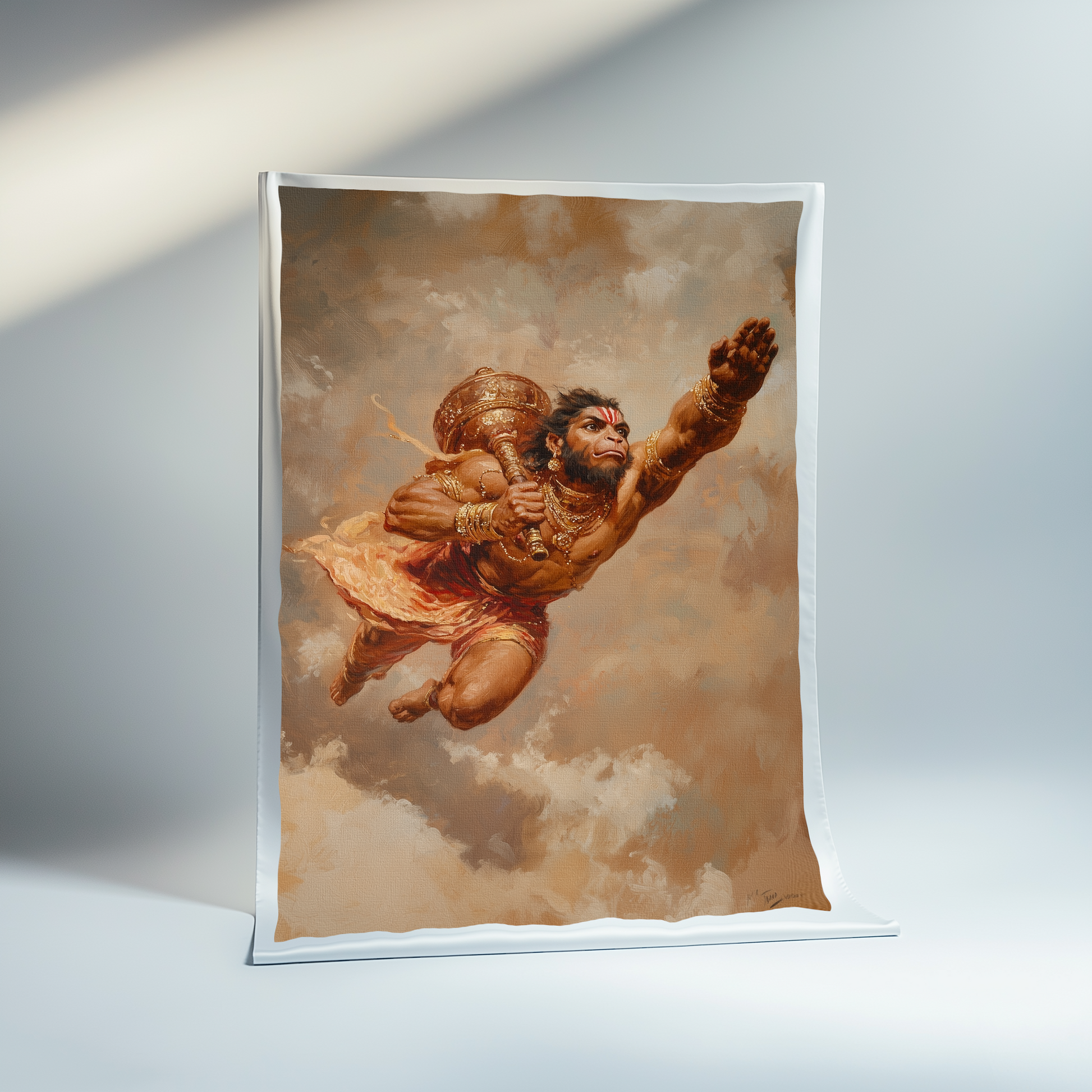 Embrace the divine power and devotion of Lord Hanuman in a flying posture, symbolizing strength, determination, and unwavering faith. This 24x36 inch premium canvas print roll beautifully captures Hanuman soaring across the sky, carrying the Sanjeevani mountain, a timeless representation of selfless service and divine protection. Printed on high-quality, museum-grade canvas with vibrant, fade-resistant colors, this unframed canvas roll allows you to frame it locally to suit your decor. Order now from www.brogen.in and bring Hanuman’s divine blessings into your home! ✅ Handle with Care: Unroll gently and lay flat to remove packaging curls.Instructions for Use: