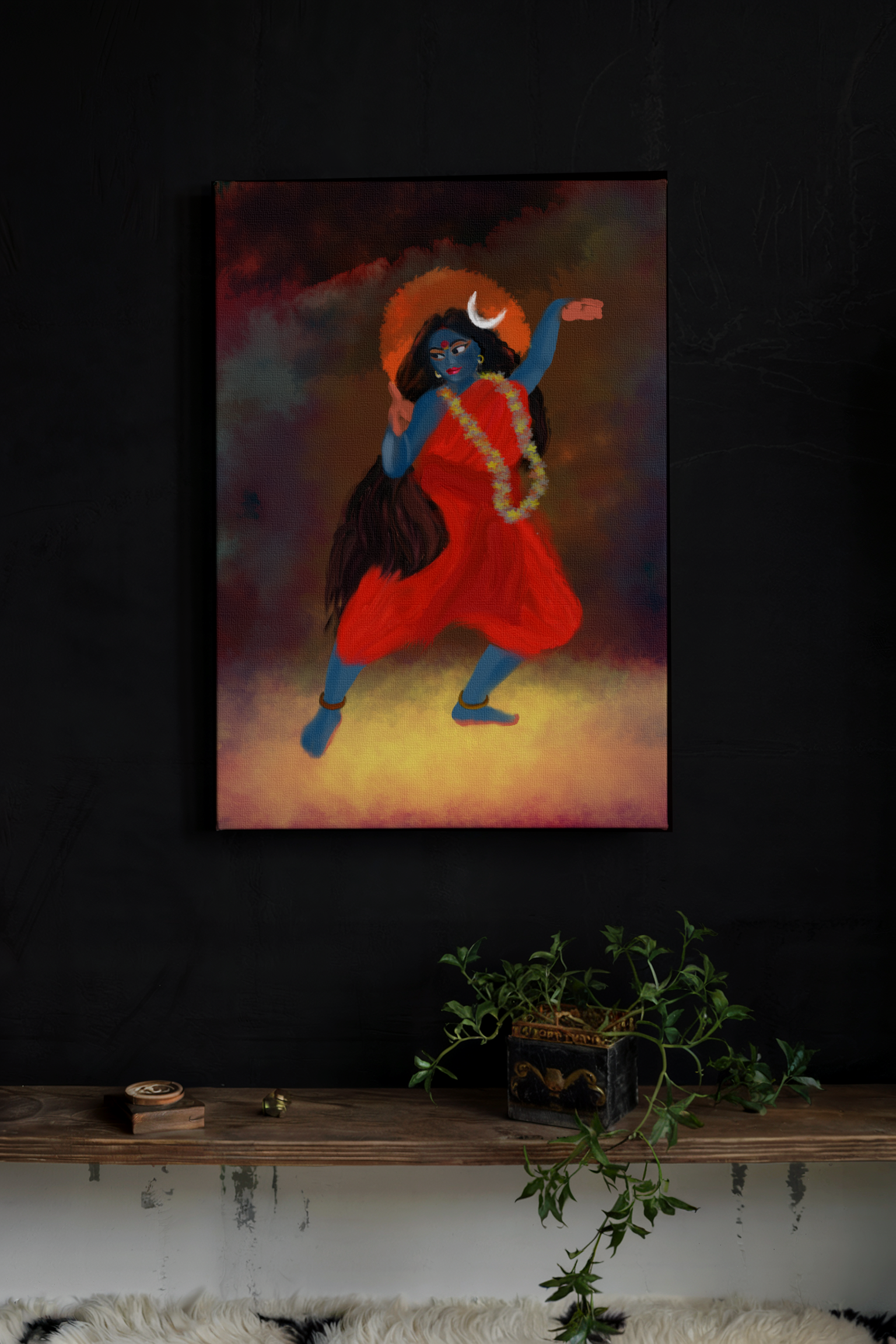 Invoke divine protection and transformative energy with this Maa Kali Digital Painting on Canvas. Depicted in her fierce and protective form, this canvas artwork captures the raw power and mysticism of Goddess Kali, the embodiment of Shakti and the destroyer of evil. Perfect for spiritual seekers, Vastu-positive decor, or those who want to bring dynamic energy into their homes or workspaces.
