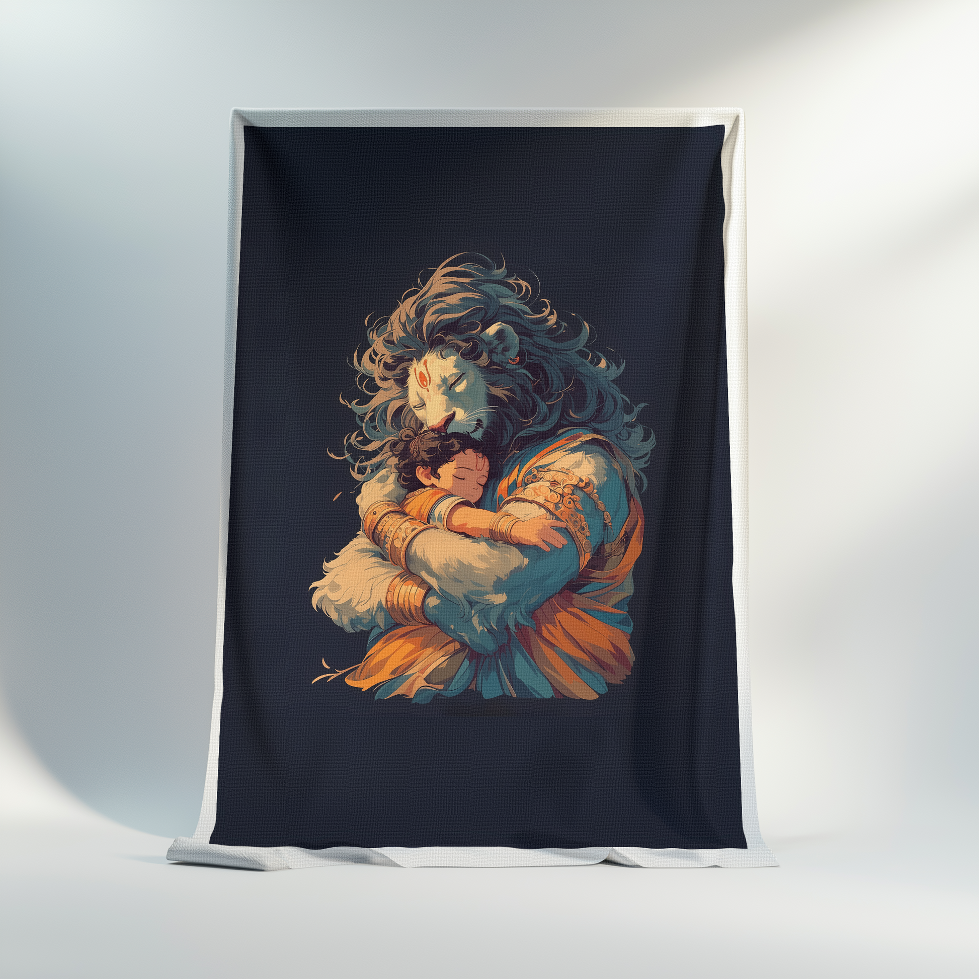 Narasimha Swamy hugging Prahlada Canvas Print 24x36 Inches – Hindu God Wall Art for Pooja Room & Spiritual Decor
