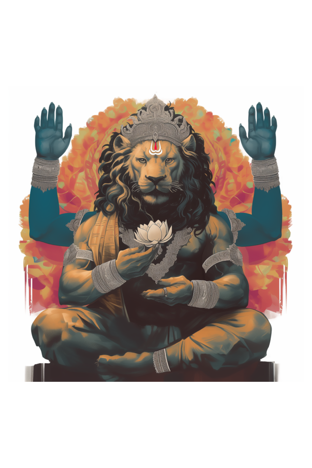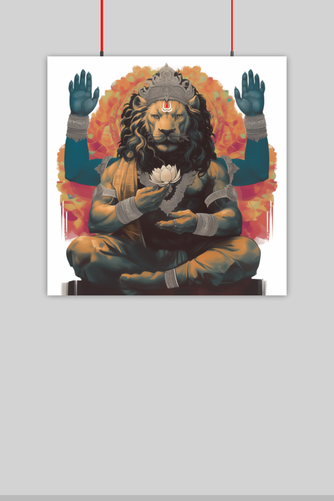 Narasimha Swamy with Abaya Hastha Wall Decor Poster – Perfect Gift for Devotees (14x14 Inch)