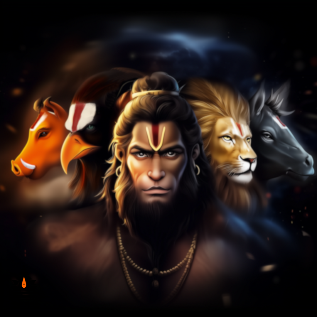 Experience the divine power and protection of Panchmukhi Hanuman, the five-faced incarnation of Lord Hanuman, in this high-resolution digital artwork. Each face represents a unique form and divine purpose: