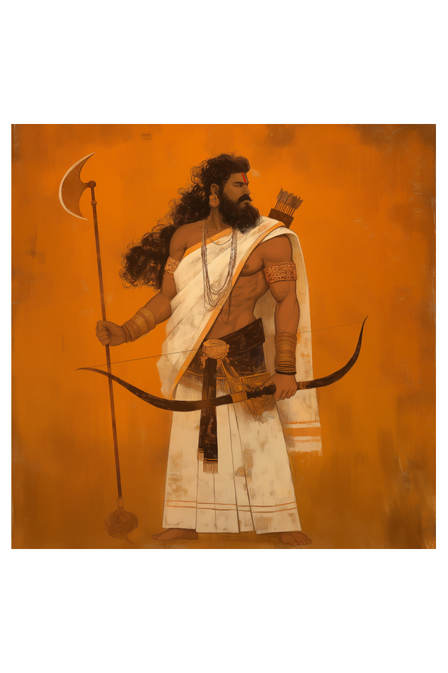 - Full White Background: Highlights the detailed artwork, bringing focus to Parshuram’s powerful presence.