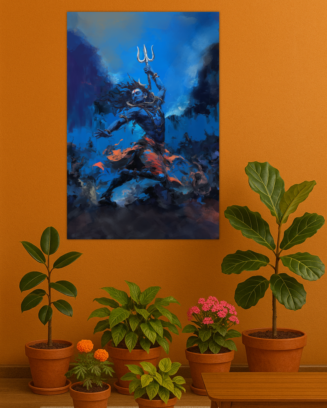 Channel the dynamic force of transformation and creation with this powerful Shiva Tandav Poster. Depicting Lord Shiva in his Nataraja form, performing the cosmic dance (Tandava), this artwork symbolizes the rhythmic cycle of creation, preservation, and destruction. It radiates intense spiritual energy, making it perfect for spaces that seek motivation, strength, and divine presence.