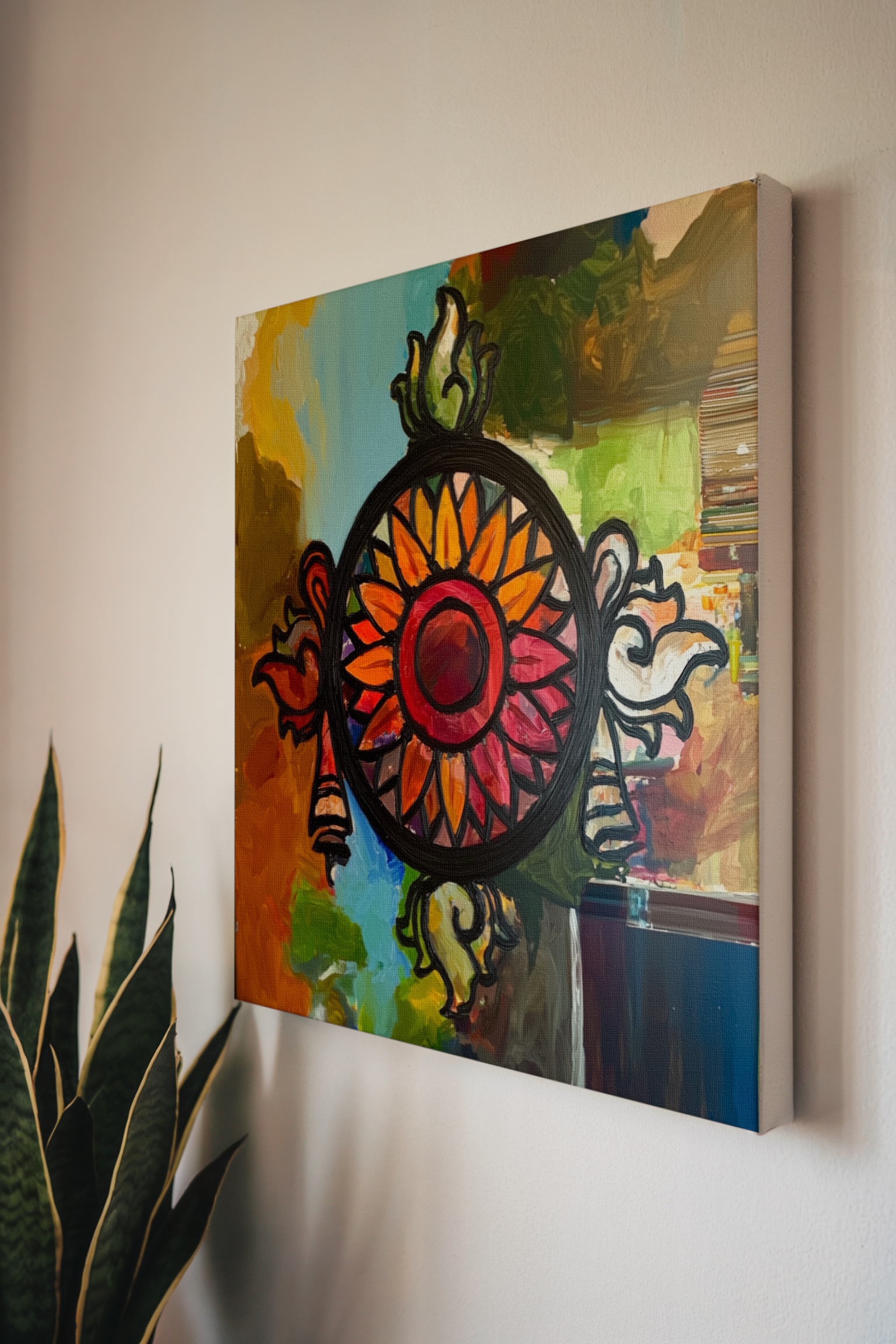 Sudarshana Chakra Digital Painting on Canvas – Divine Protective Disc of Lord Vishnu for Spiritual & Vastu Wall Decor