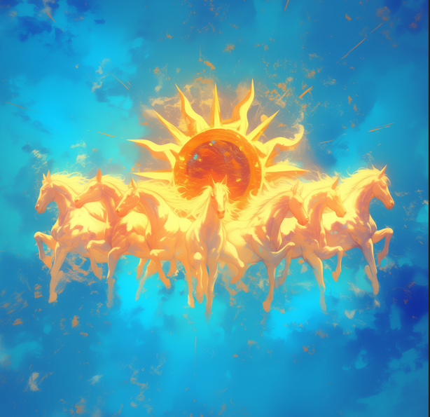 Surya Dev with Seven Horses Digital Art – Vastu Decorative Artwork (High-Resolution 1:1 Ratio)